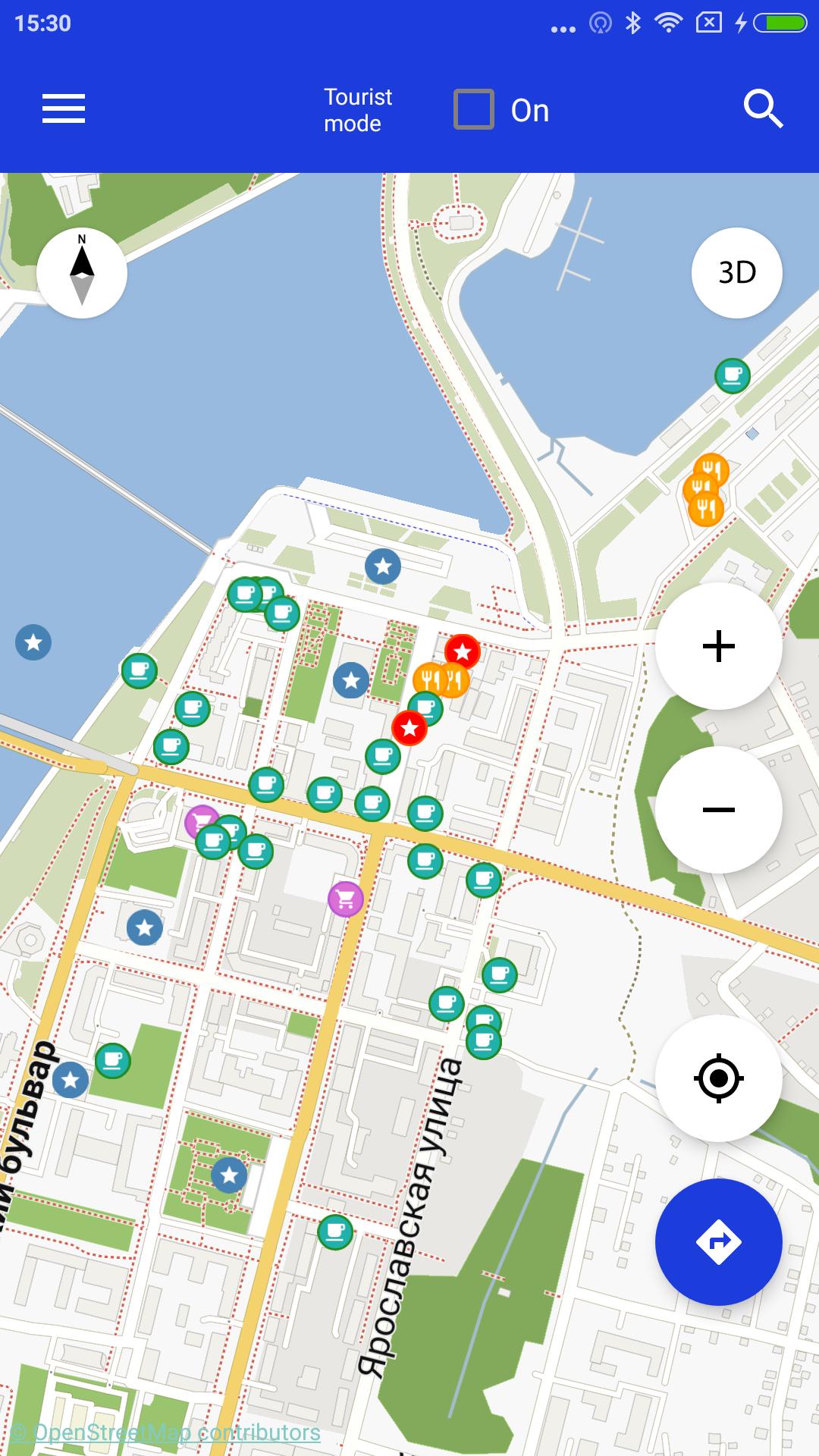 • Sight-seeing attractions on the map in one click (tourist mode)